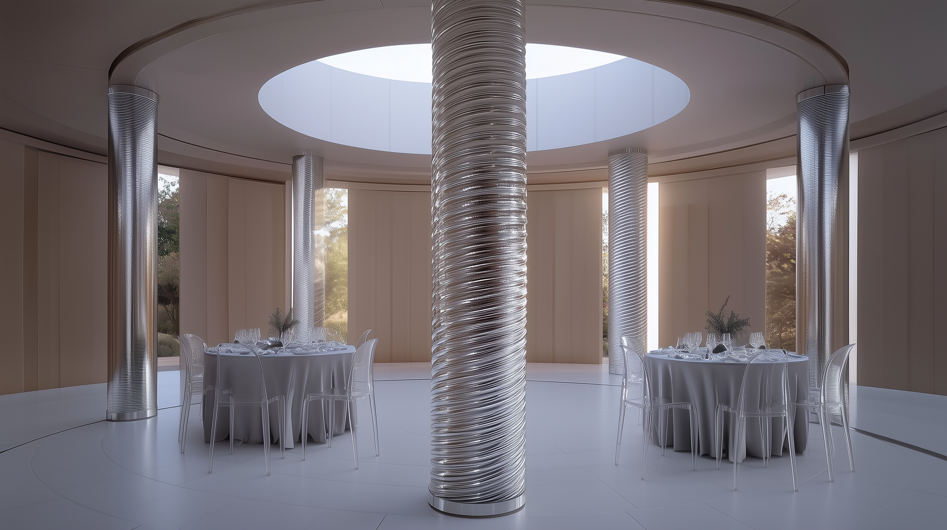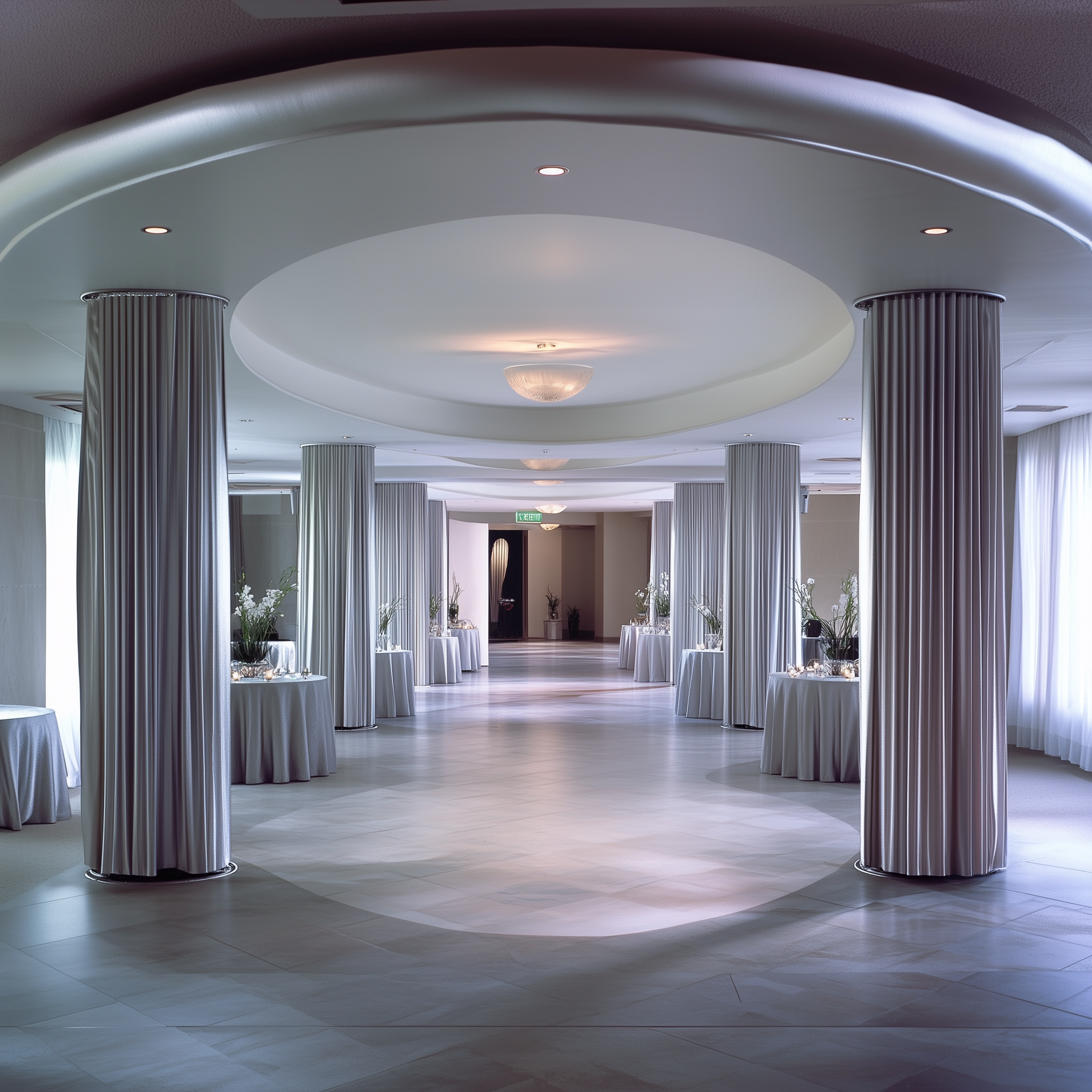 Для разработки были взяты зоны: сцена, общее оформление зала, арт объекты на гостевые столы